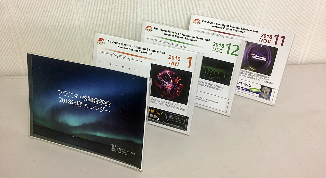 プラズマ・核融合学会誌では、皆様にご好評をいただいております卓上カレンダーを,今年も3月号付録として製作いたします。このカレンダーは、プラズマ・核融合学会員全員に配布され、約2000人の研究者・技術者のデスク上に1年間掲示されることになります。