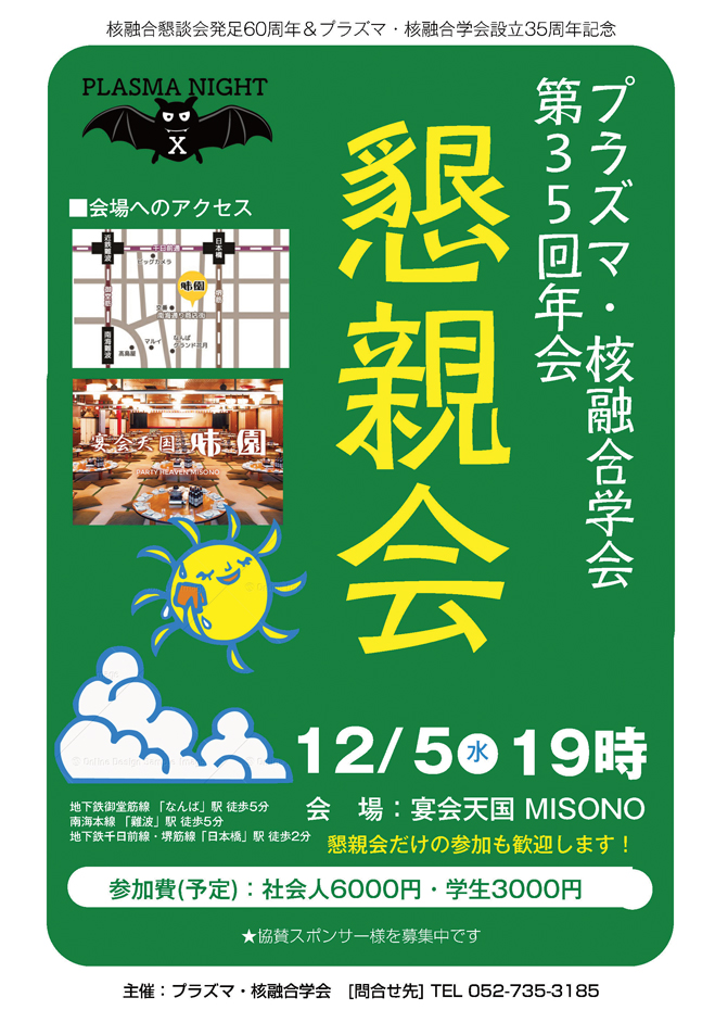 ★今年(2018)は,核融合懇談会発足60周年&プラズマ・核融合学会設立35周年の年にあたります。できるだけ多くの会員のみなさま そしてご関係のみなさまにご参集いただけるよう,交通の便利のいい場所での開催をいたします。ぜひお運びください。